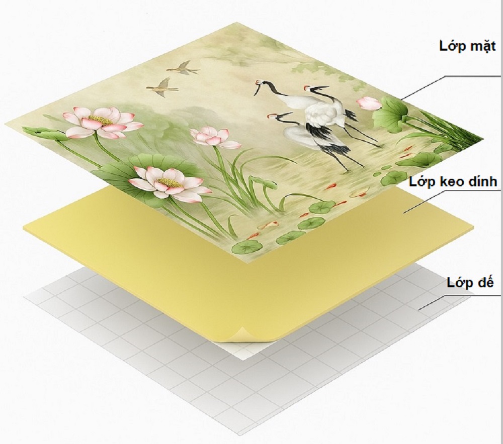 Decal dán tường thường gồm ba lớp chính, được kết hợp với nhau bằng công nghệ cán nhiệt hiện đại: